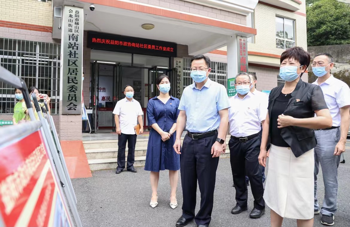 9月8日,市政协主席胡立安深入赫山区会龙山街道南站社区调研,并为南站社区委员工作室揭牌。他强调,要扎实做好委员工作室党建引领、委员值班、政协云融合履职等工作,充分发挥桥梁纽带作用,为群众办实事、解难题。市政协秘书长李赛参加。