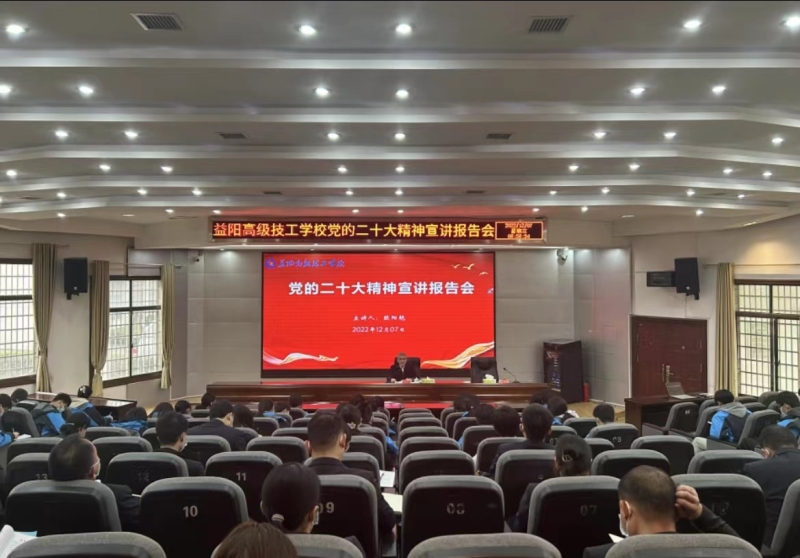 12月7日,市委常委、市纪委书记、市监委主任欧阳艳赴益阳高级技工学校,宣讲党的二十大精神。