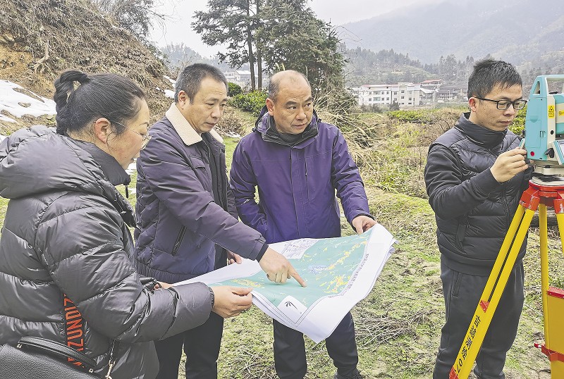 安化抽水蓄能电站项目中,县乡人大代表配合工作人员上门进行实物量测量。