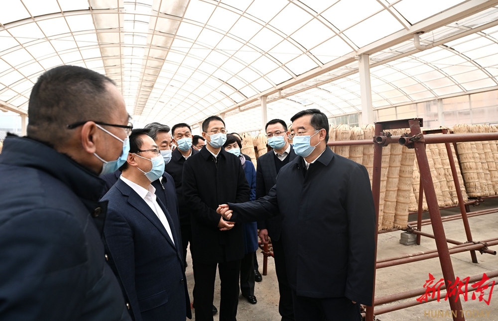 (2月2日,张庆伟在亚光科技集团股份有限公司调研。以上照片均由 湖南日报全媒体记者 唐俊 摄)