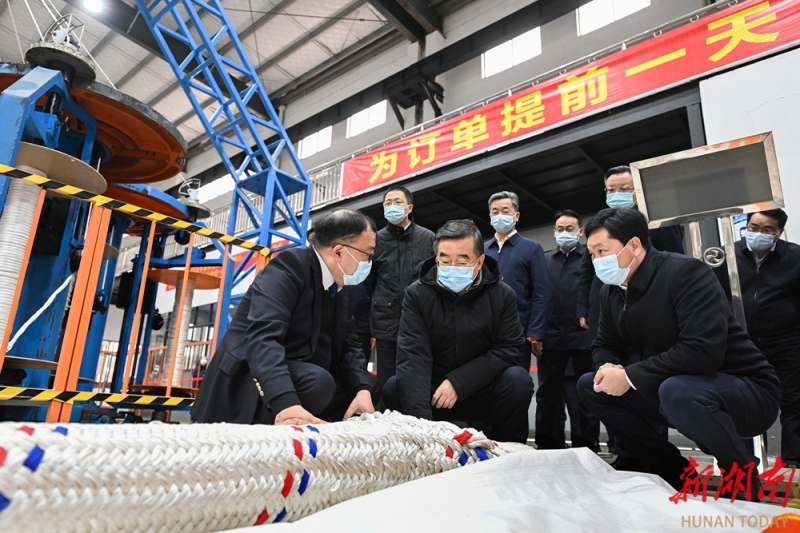 新春伊始,位于沅江市的鑫海股份有限公司车间内,工人有序作业,机器运转繁忙,一片热火朝天的生产景象。张庆伟勉励企业坚持稳中求进,深耕绳网领域,加强与绳网产业上下游的供需对接,推动全产业链协同融合发展,助力湖区经济转型升级。来到亚光科技集团股份有限公司,张庆伟仔细了解企业复工复产等情况。他强调,要抢抓游艇装备制造业发展机遇,大力培育新型消费市场,助力全省航天航空航海产业高质量发展。各地各有关部门要坚持“两个毫不动摇”,持续优化营商环境,提振企业发展信心,加强央企对接服务,培育壮大“专精特新”企业,打造更多新的经济增长点。