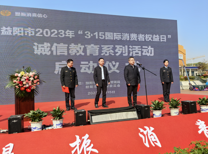 3月15日,益阳市启动2023年“3·15国际消费者权益日”诚信教育系列活动。副市长邓曙光出席启动式。市消费者权益保护工作联席会议有关成员单位、市消费者委员会有关委员单位和部分企业工作人员参加启动仪式。