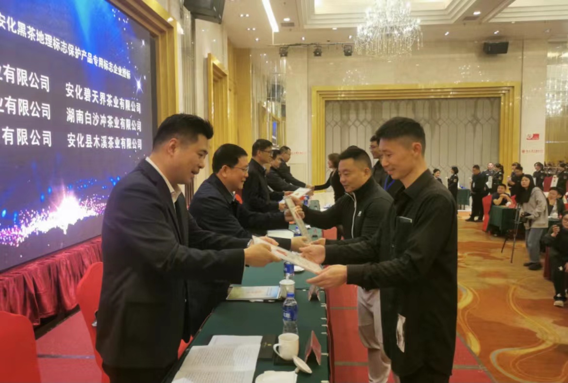 会议还为18个省级地理标志产品保护示范区授牌,对新核准使用安化黑茶地理标志保护产品专用标志的19家企业进行授标。安化县、长沙市开福区、汨罗市、张家界市永定区分别代表安化黑茶、沙坪湘绣、长乐甜酒、张家界莓茶等国家和省级示范区介绍经验。