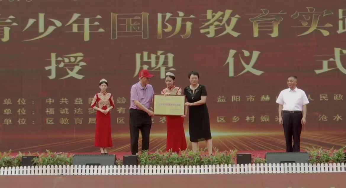仪式上,与会领导为“青少年国防教育实践基地、少年军校教育实践基地、乡村振兴学院”授牌;北大金秋教育集团和湖南福诚达实业有限公司举行了战略合作签约。