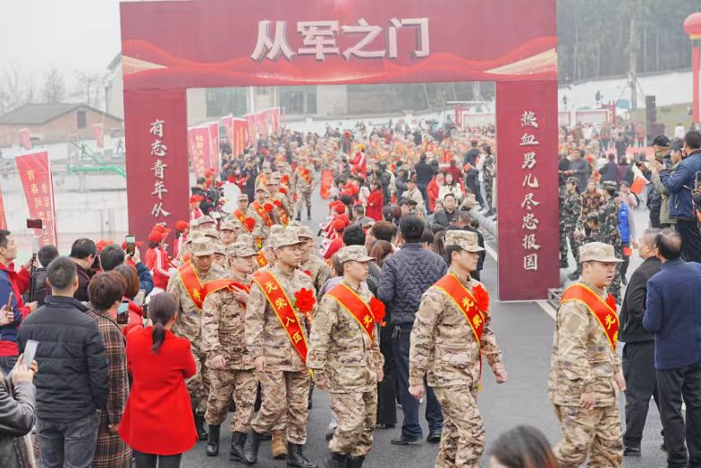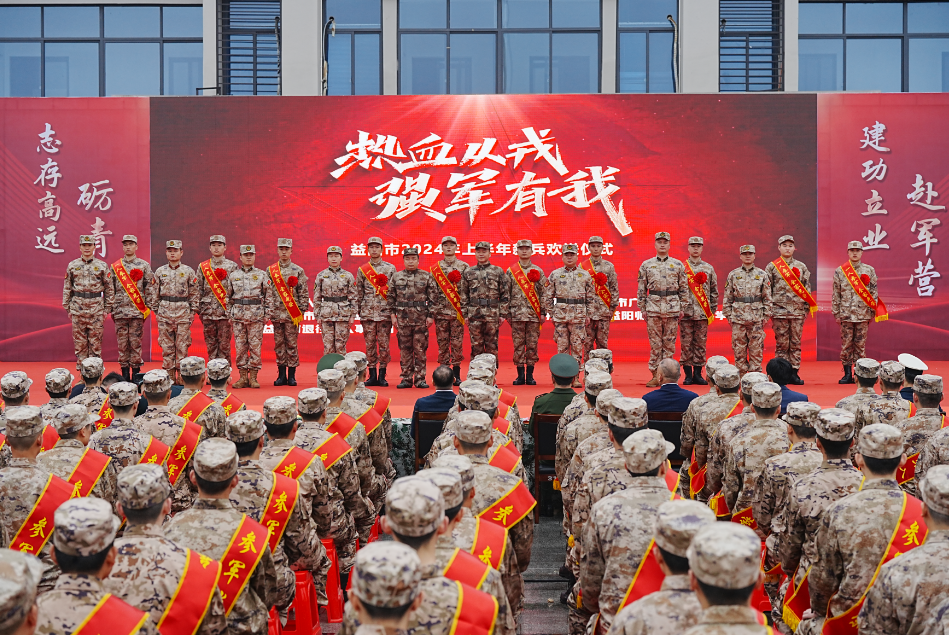 阳春三月,军歌铿锵,300余名新兵整齐列队。他们身披绶带,胸戴红花,带着满腔兴奋与自豪,接受亲人和家乡父老的祝福。欢送现场彩旗飘飘,锣鼓喧天,气氛热烈,队列旁边围满了前来欢送入伍新兵的家属们。益阳院校学子、退役军人还为新兵们带来了精彩的节目。