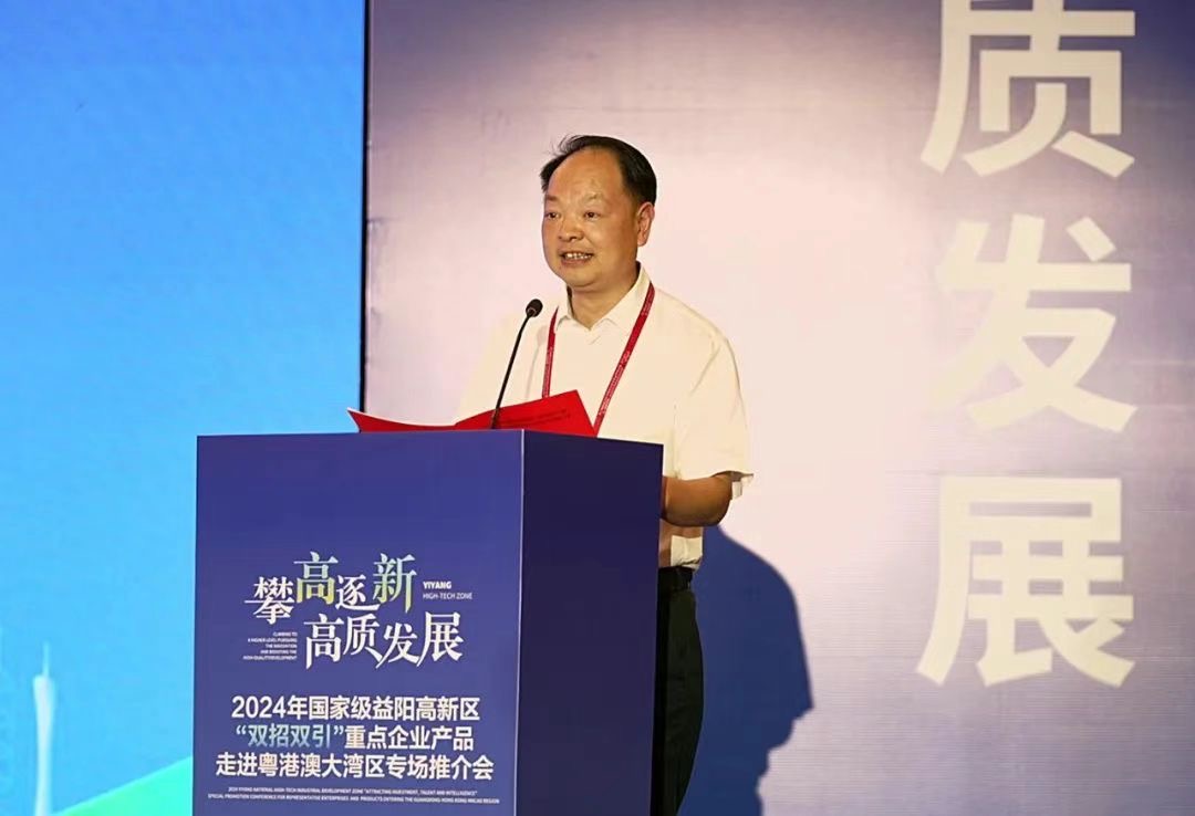 8月20日,2024年国家级益阳高新区“双招双引”暨重点企业产品走进粤港澳大湾区专场推介会在深圳举行。副市长乐运成讲话,湖南省人民政府驻深圳办事处二级巡视员郑水利、市政协副主席李晓跃参加,益阳高新区党工委书记左志锋致辞,益阳高新区管委会主任李俊杰主持会议。