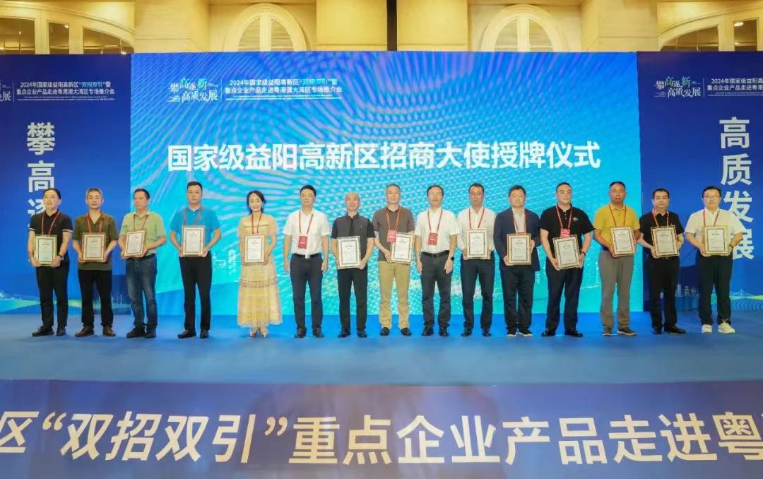本次推介会共有180位粤港澳大湾区客商、企业、商会、校友会代表参加。益阳高新区作园区推介,园区重点企业作公司及产品推介,各商会代表发言,益阳高新区管委会、益阳投资控股集团分别与广东聚充充科技有限公司、深圳市力合创业投资有限公司签约。会上还举行了国家级益阳高新区招商大使授牌仪式和国家级益阳高新区驻粤港澳大湾区招商联络站授牌仪式。