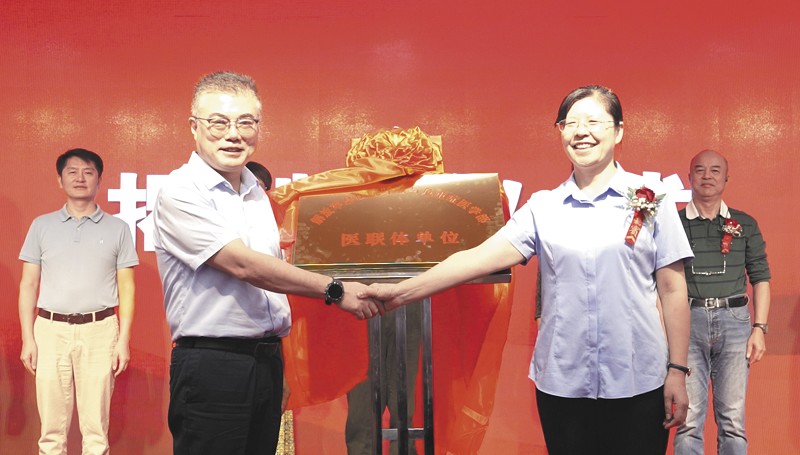 ②陶笙和张晓萍共同为“解放军总医院第八医学中心骨科医联体单位”揭牌。