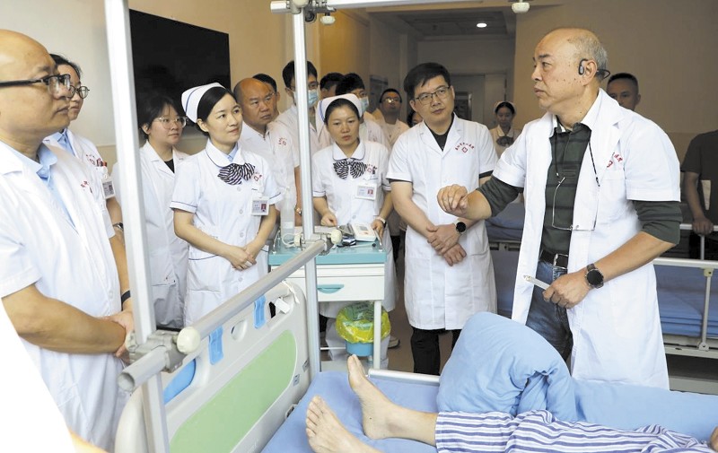 ④解放军总医院的专家在市中心医院骨外科进行疑难病例查房。