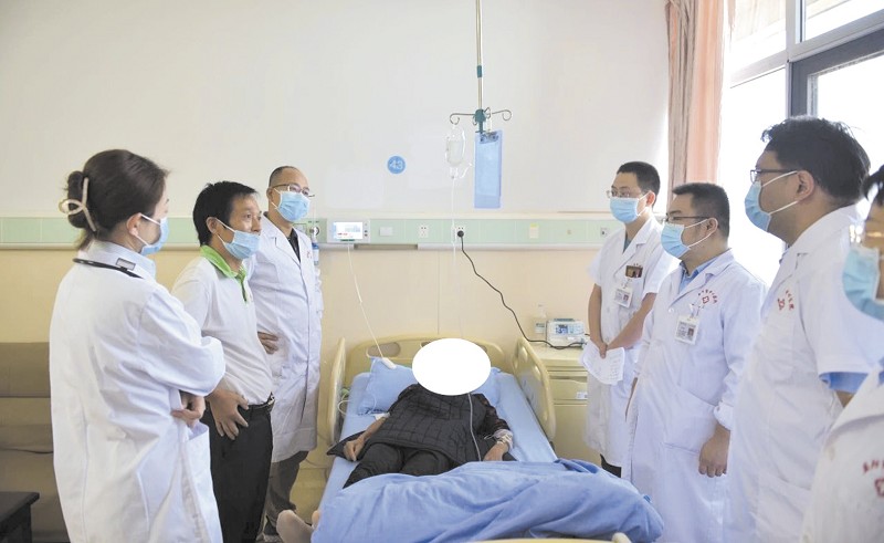 ⑤解放军总医院的专家在市中心医院呼吸与危重症医学科进行疑难病例查房。