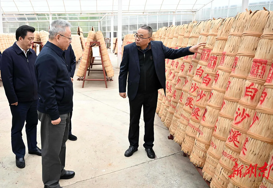 在安化县,沈晓明来到唐溪茶场、茶乡花海生态文化体验园、白沙溪茶厂股份有限公司,深入了解当地茶产业发展、工艺传承创新、产业融合等情况。他指出,要立足生态环境和产业基础,高质量谋划推进产品开发、市场拓展和茶旅融合,更好促进产业增效、产品增值、农民增收。