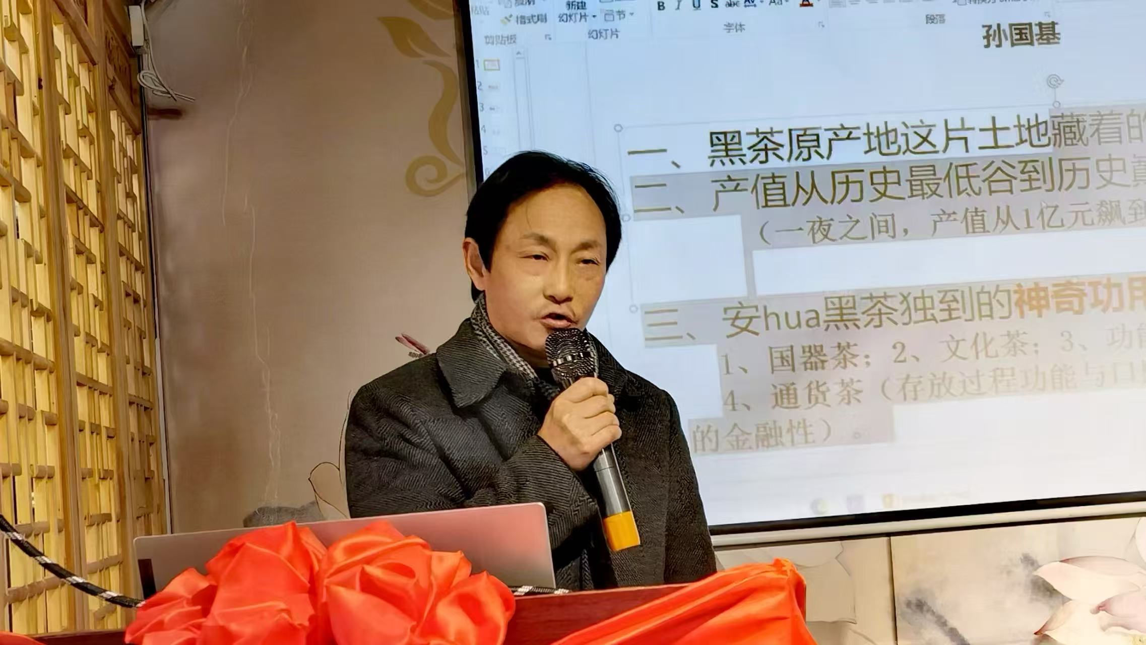 首堂授课由市茶文化研究会会长孙国基主讲,他以《益阳安化黑茶几大神奇点解读》为题,从黑茶原产地这片土地藏着的神奇密码、产值从历史最低谷到历史巅峰的神奇现象、安化黑茶独到的神奇功用等三个方面对安化黑茶的神奇之处进行了精彩解读,内容丰富、观点新颖、见解独到、语言幽默,让听众领略了安化黑茶独特的文化魅力。