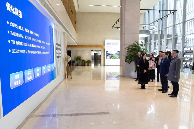熊炜一行先后参观了传化科技城与集团展馆,深入了解传化从“一口大缸、一辆自行车”起步,逐步成长为现代化企业集团的发展历程。考察交流座谈会上,熊炜介绍了益阳经济社会发展情况。他指出,近年来,益阳发展态势稳健,重点项目进展顺利,科技创新成果不断涌现,平台能级持续提升,发展环境更加优化。特别是特色产业势能强劲,电容器、先进碳基材料、PCB三张金名片持续擦亮。传化集团作为营收超千亿的民营领军企业,产业布局与益阳发展需求高度契合。希望传化集团发挥核心优势,与益阳携手并进,进一步拓展多领域协同合作,实现互利共赢、共同发展。