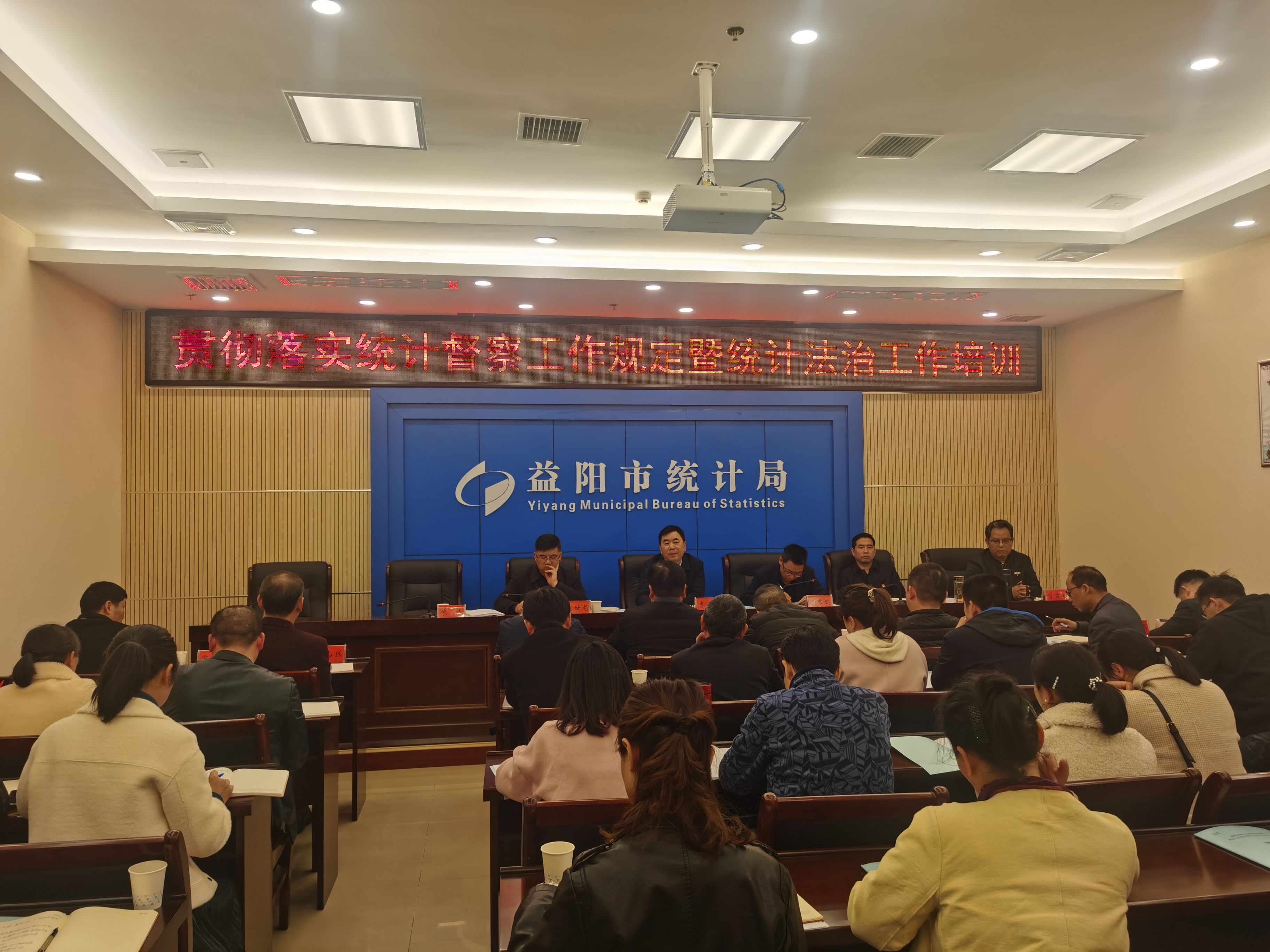 为落实全省统计法治工作会议精神, 3月23日,益阳市统计局组织召开全市贯彻落实统计督察工作规定暨统计法治工作培训会。局长邓象庭出席会议并讲话,党组书记李国荣主持会议。各区县(市)统计局局长、分管法治工作负责人、法规股长、市管干部和机关各单位主要负责人,共50多人参加会议。