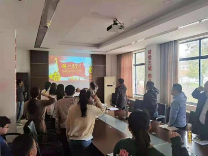 学习前,全体党员面对党旗重温入党誓词,以铿锵的语言再次表达忠于党的事业,努力工作,不畏牺牲,为共产主义事业奋斗终身的决心。