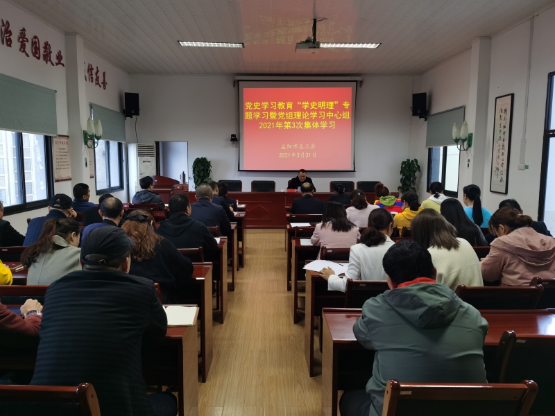 3月31日上午,市总工会举行党史学习教育“学史明理”专题学习暨党组理论学习中心组2021年第3次集体学习。中心组全体成员及全体干职工参加集中学习。