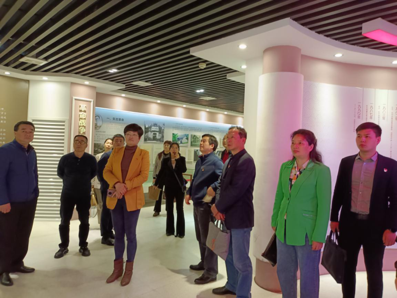 图为中共益阳市委办公室室务会理论学习中心组成员及机关党支部书记一行在益阳市档案馆观看革命战争史,进行红色教育