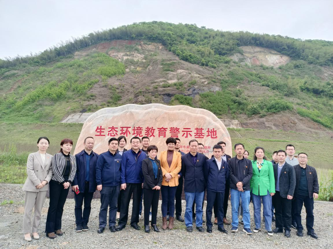 图为中共益阳市委办公室室务会理论学习中心组成员及机关党支部书记一行在赫山区泥江口镇原宏安矿业进行生态环境警示教育