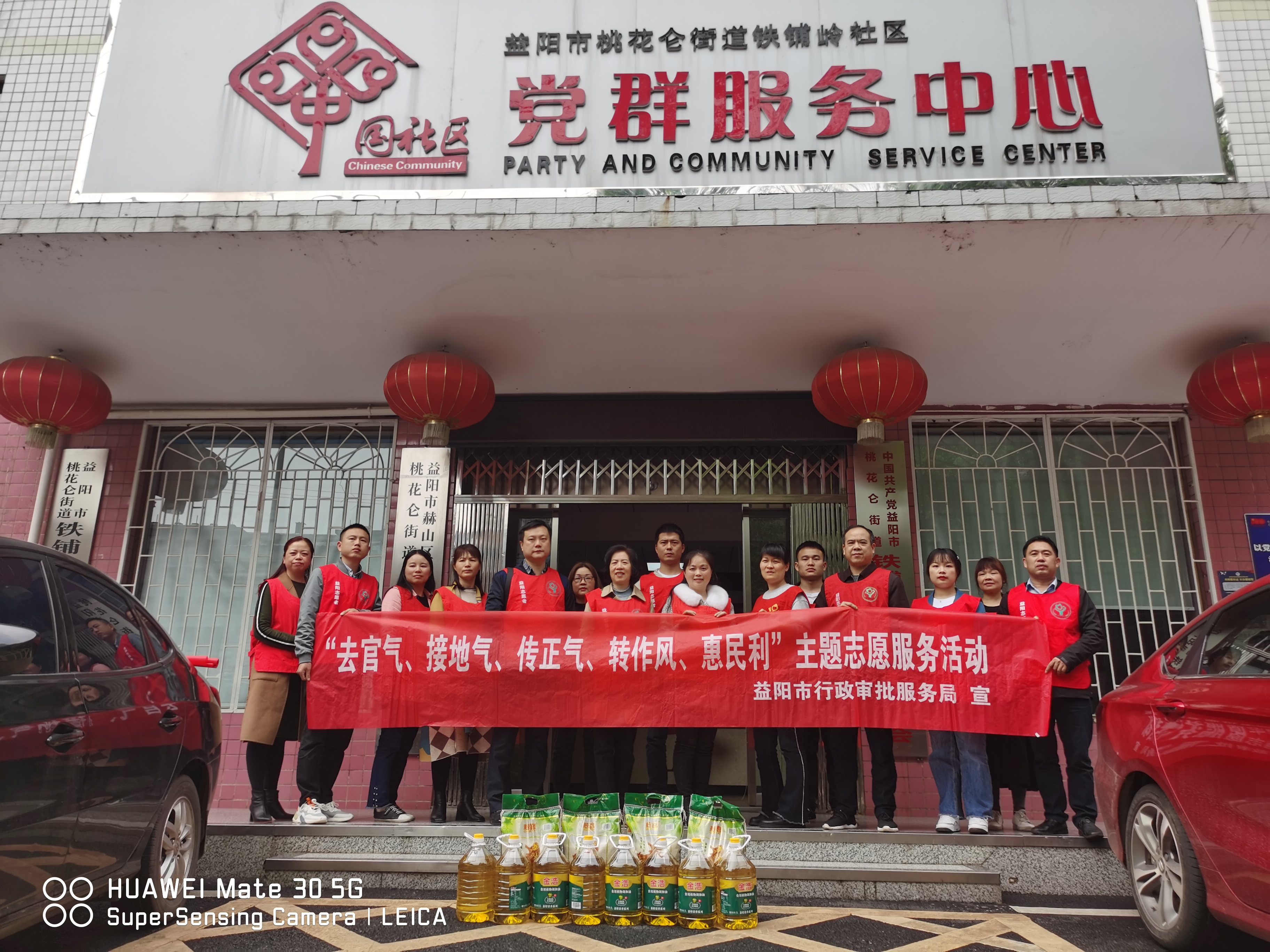 4月22日,益阳市行政审批服务局到结对的铁铺岭社区开展 “去官气、接地气、传正气、转作风、惠民利”主题志愿服务活动,帮助困难群众实现微心愿,协助社区开展和谐平安创建活动。