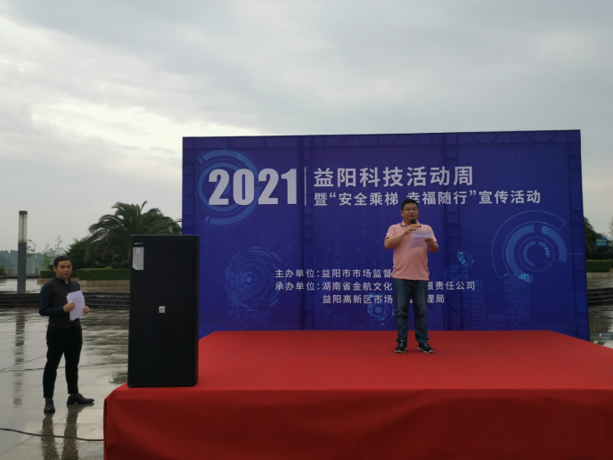 为普及电梯安全知识,提高市民电梯应急救援能力,5月28日,益阳市市场监管局结合“全国科技活动周”要求,在益阳市佳宁娜广场开展“2021年益阳科技活动周”暨“安全乘梯 幸福随行”宣传活动。活动分三个环节进行,组织者首先开展电梯安全知识宣讲与政策咨询解答,接着由工作人员现身说法作电梯应急救援平台模拟演示,最后采取与现场市民互动方式进行电梯安全知识有奖问答,将活动推向高潮。益阳市市场监管局党组成员、总工程师刘青峰出席活动并致辞。