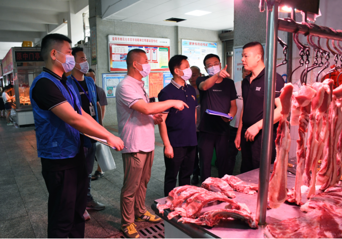 执法人员先后来到桃花仑市场、鹿角园综合大市场、学门口农贸市场、沃尔玛超市、步步高超市,重点检查经营户的主体资格许可情况,上市销售的猪、牛、羊肉“两证两章”是否齐全,来源是否合法,是否落实进货查验制度等情况。并采取随机抽检的方式,抽检鲜肉及肉制品共9批次。同时,向肉制品经营户现场科普食品安全相关法律法规,要求严格落实食品安全主体责任,不得采购、经营不符合国家标准或法律法规禁止生产经营的食品,有效排查食品安全隐患,提升食品安全水平,保障人民群众饮食安全。