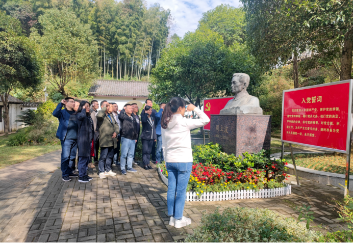 志愿者活动结束后,全体党员赴湖南省爱国主义教育基地、益阳红色记忆地图打卡地——周立波故居开展主题党日活动,参观故居,并重温入党誓词。党员们有序参观周立波事迹展,了解了他投身抗战,以笔为枪,一生为革命、一生为工农兵写作的事迹。周立波崇高的革命精神和不懈奋斗的人生经历,以及扎根人民的高尚情怀等等,使在场的党员同志深受触动和启发。