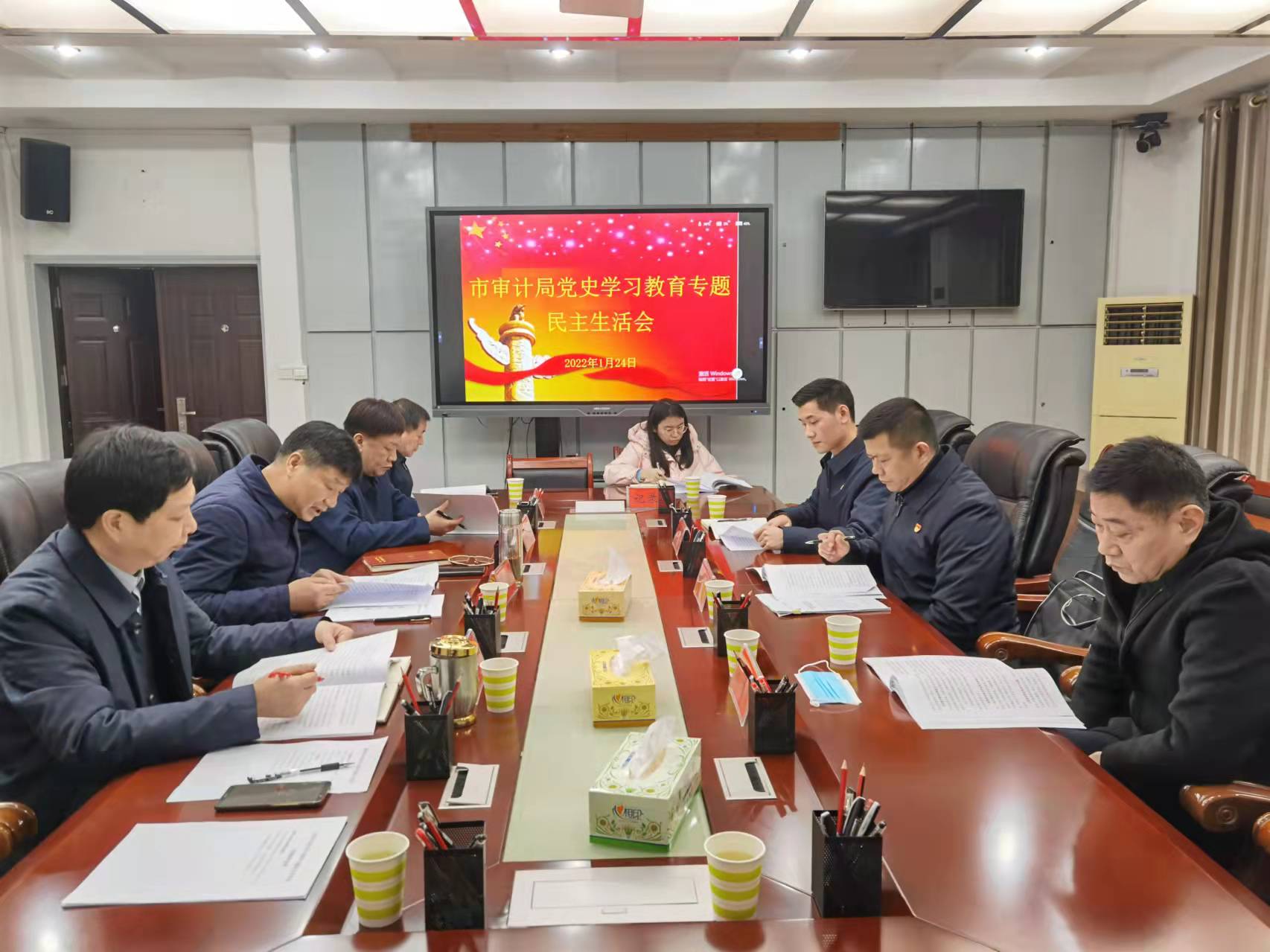 1月24日,市审计局党组召开党史学习教育专题民主生活会,局党组书记、局长周飞明主持会议。市纪委监委派驻市财政局纪检监察组组长曾惠贤,市委党史学习教育第九指导组成员、三级调研员夏迎春,市委组织部办公室副主任黎进到会指导。
