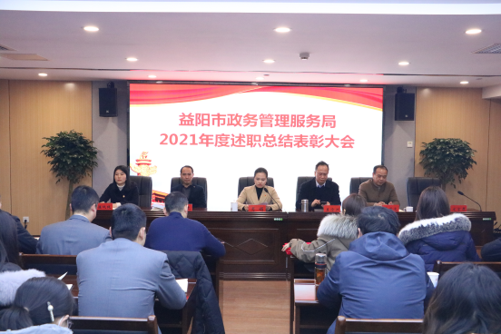1月27日,益阳市政务管理服务局召开2021年度述职总结表彰大会,局党组书记、局长肖娟主持会议并讲话,二级巡视员莫沧洲出席会议,局党组成员、各科室(中心)全体干职工参加会议。