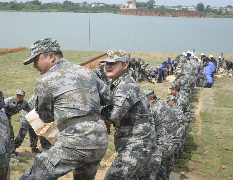 接到抢险命令的100名民兵应急队员组成的突击队和40名退役军人组成的威龙应急救援队伍迅速投入现场抢险。突击队员分成两组,一组紧急抢运袋装砂石,一组在技术专家的指导下铺设砂石反滤层;退役军人威龙应急救援队则快速安装砂石传输机,将砂石源源不断地输送到出险地点。随后,险情得到控制。