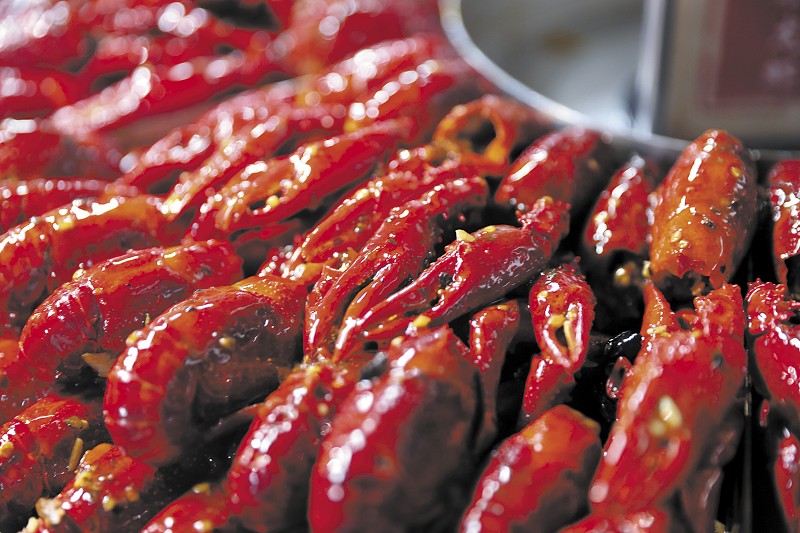 在挑战赛现场,大厨们烹制了各种口味的小龙虾,带给参会嘉宾们一场饕餮盛宴。“渔家姑娘”的麻辣爆头小龙虾个头大,颜色鲜亮,又白嫩又饱满的虾肉让人垂涎三尺。长沙文和友推出了冰镇大虾,甄选一两二以上规格的生猛活虾,在小龙虾头部用激光刻上“长沙”二字,还运用高科技超声波的高频震动清洗等多项科学技术,成为现场小龙虾文化中最大的亮点。“我认可靓虾二哥、渔家姑娘、小渔村等餐馆的小龙虾,虾肉嫩滑Q弹,肉质紧实,吃起来还有一丝丝甜,口感非常丰富。”来自长沙的嘉宾文辉说。