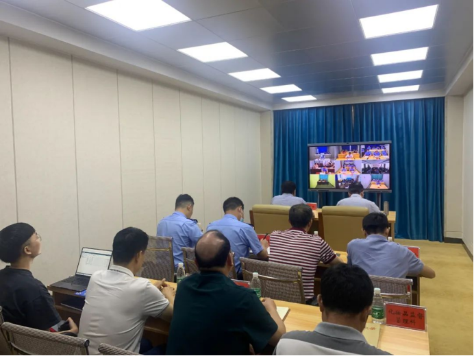 市市场监管局在智真会议室设主会场,二级调研员龚建夫、市综合行政执法支队支队长吴新跃、市局药械化监管科室全体人员、执法支队副支队长和药品安全专项整治工作联络员在主会场参会。会议还在各区县(市)局设分会场,各区县(市)局主要负责人及分管药品安全专项整治工作负责人、药械化监管股室及稽查执法大队主要负责人参加会议。