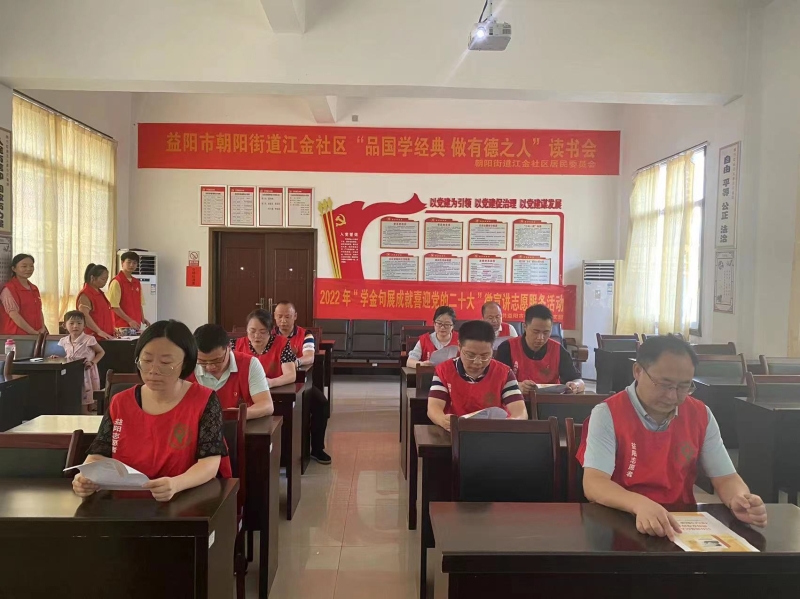 为深入学习宣传贯彻习近平新时代中国特色社会主义思想,迎接党的二十大胜利召开,7月20日,市委办二支部结合创建全国文明城市暨创建省级文明标兵单位系列活动,走进高新区朝阳街道江金社区开展“学金句、展成就,喜迎党的二十大”理论微宣讲活动。