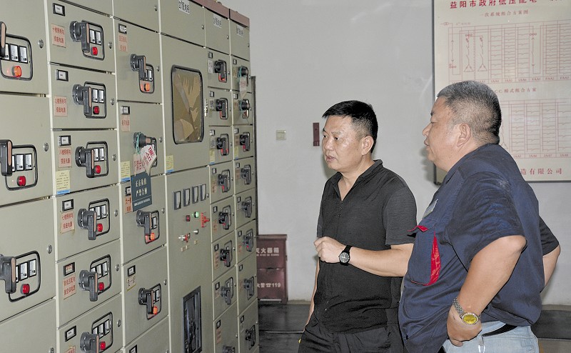市机关事务管理局工作人员在市委市政府办公楼配电房检查用电负荷。