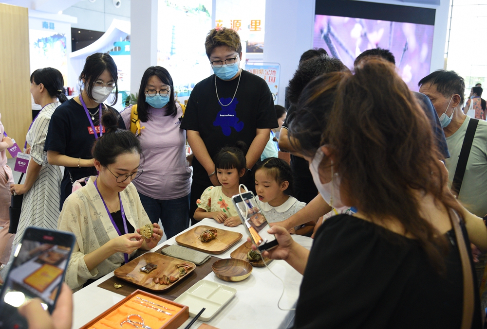 益阳市在本届旅博会上设置360平方米的主题形象展区,展示安化黑茶、青松玉翠皮蛋、张家塞甜酒、天意木国木雕、南洲王食品、羞山官厅面、億昌麻香糕、大通湖蟹等各类特色旅游商品、文创产品、非遗项目共22类,发放宣传资料1.5万余份。穿插进行的益阳弹词、桃江歌舞、古筝茶艺、蟹道表演、擂茶表演等节目极具地域文化特色,掀起一波又一波的参观热潮,与会嘉宾及游客纷纷前来益阳展区采购文旅商品,了解文旅产业发展成果,洽谈文旅合作项目,展区人气持续火爆。
