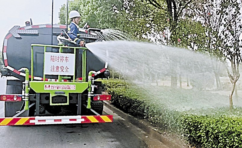 面对严峻的旱情,市园林绿化养护中心制定了应急方案,定人、定车、定责,对城区绿化分片包干,采取避开高温、错峰出行、夜间浇水等方式,抗旱保绿。在设置了地面喷淋、取水阀等抗旱设施的公园和道路绿地,园林工人早、晚时段对绿化进行人工浇灌,尤其对不耐旱、新移栽的植株加大浇灌力度,从而缓解植株萎蔫、灼伤等情况。同时,避开居民用水高峰段,每天安排洒水车通宵轮班作业,对城区主次干道绿地植物进行浇水灌溉,在保证居民用水的同时全力护绿保绿。市园林绿化养护中心还将持续实时关注气候变化和城区内苗木生长态势,加强城区公园绿地、道路绿化的旱情巡查,及时为花卉草木“消暑”,确保城区绿化安全。