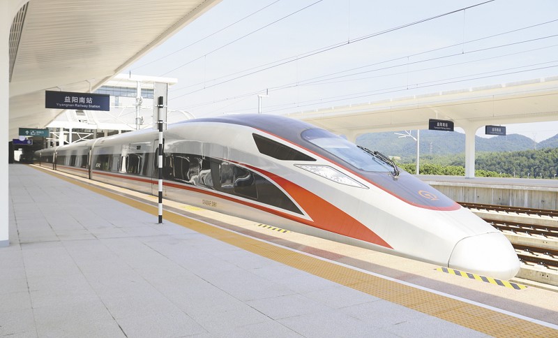 驶入高铁益阳南站的复兴号列车。