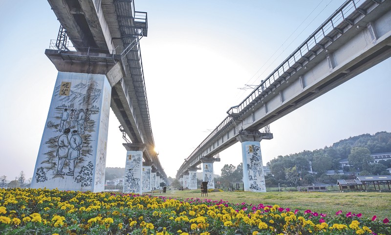 石长铁路大桥墩,变身《山乡巨变》绘图。