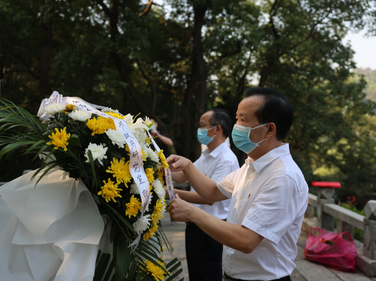 伴随着深情庄严的《献花曲》响起,市政府副秘书长杨禄仁、市政府研究室副主任龙闻生缓步登上纪念碑基座,向曾士峨纪念碑敬献花篮,整理缎带。大家合唱中华人民共和国国歌,并面向纪念碑向烈士默哀,深深表达了对革命先烈的缅怀之情和“永远跟党走”的坚定信念。