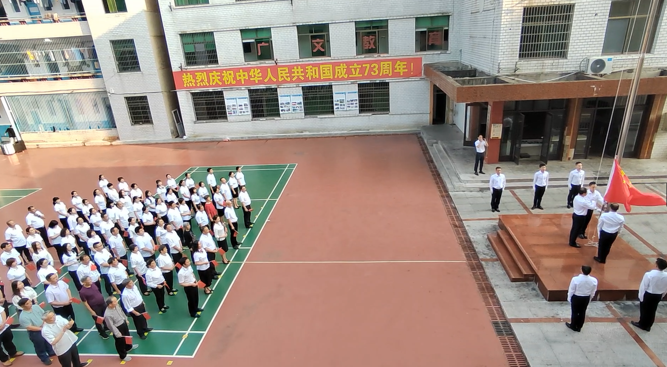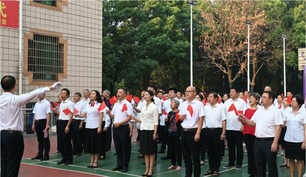“五星红旗迎风飘扬,胜利歌声多么响亮……”教职工以饱满的热情和嘹亮的歌声表达爱国奋斗正当时、建功立业新时代的决心,表达对伟大祖国、亲爱的党和人民的美好祝福。随后,全体党员重温了入党誓词,进一步增强民族自豪感。