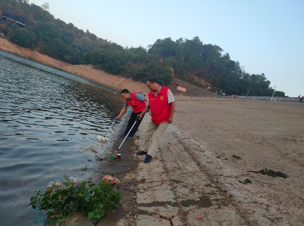 10月1日一大早,益阳高新区河长办携手益阳市东部新区志愿者协会,组织20多名志愿者到鱼形山水库开展净滩行动,保护水资源,用这样的方式为祖国母亲庆生。