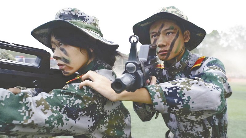 “站住,别动!”9月24日,一伙穷凶极恶且训练有素的歹徒冲进益阳职业技术学院校园,抓住3名学生当人质,并迅速进入一教学楼内占领制高点。不少学生四处逃窜,现场一片混乱。老师连忙赶往现场,一边保护学生撤退到安全区域,一边报警……这是学校新生军训汇报暨开学典礼上反恐防暴应急演练中的场景。