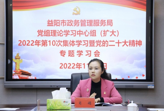 为持续掀起学习宣传贯彻党的二十大精神热潮,11月9日上午,市政务管理服务局党组书记、局长肖娟主持召开党组理论学习中心组(扩大)会议,专题学习党的二十大精神。局机关及二级机构全体人员参加学习。