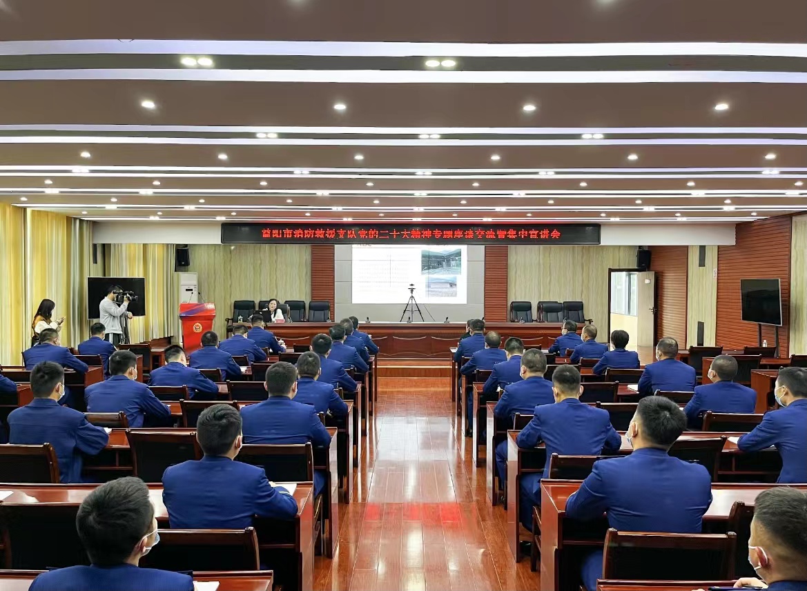 黄可胜结合自己的成长经历和所见所闻,宣讲党的二十大精神,勉励大家在新的赶考路上向益阳人民交出一份优异的消防答卷,推动益阳消防事业高质量发展。与会人员认真聆听、仔细记录,活动现场气氛热烈。