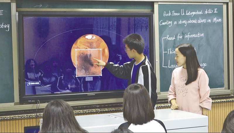 神秘的太阳系“握”在掌中,星体随着学生的动作缓缓运行;用手指在屏幕上360度旋转3D虚拟火星,放大观察火星地表特质……近日,在市第六中学老师朱煜的一堂信息技术运用成果展示课上,学生们被眼前的情景深深吸引,纷纷走上讲台与教学一体机互动。