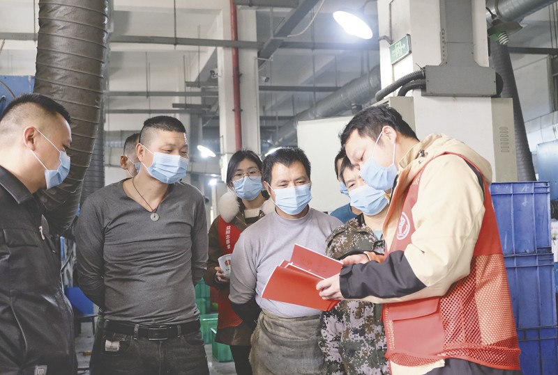 工作人员在企业宣讲宪法。