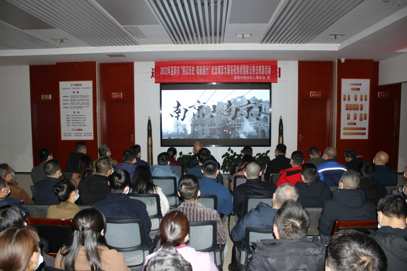 2022年12月13日是第九个南京大屠杀死难者国家公祭日,为缅怀遇难同胞和革命先烈,铭记历史、砥砺前行。12月12日下午,市退役军人事务局组织开展“铭记历史 砥砺前行”南京大屠杀死难者国家公祭日观影活动。市退役军人事务局、市住房保障服务中心、市工商联、市规划行政执法支队、退役军人代表参加观影活动。