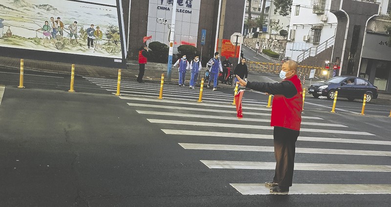 此外,学校充分发挥三方志愿服务力量,为校园周边交通安全建立一道志愿红的屏障。2022年下学年开始,学校招募了一批党员志愿者和青年教师志愿者,加入每天早高峰的校园周边交通秩序维护工作。学校党委书记、校长眭和平带头在校门口值班值守,风雨无阻。58岁的老党员曹芳辉,临近退休不褪色,志愿服务一丝不苟。