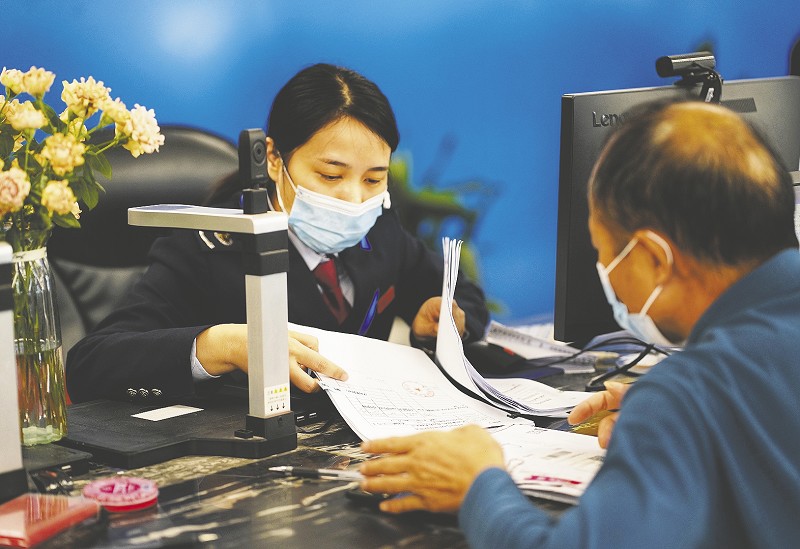 ▲办税服务人员审核企业涉税资料,提供窗口办税服务,并进行容缺办理。
