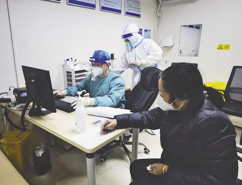 发热门诊医生为患者看诊。