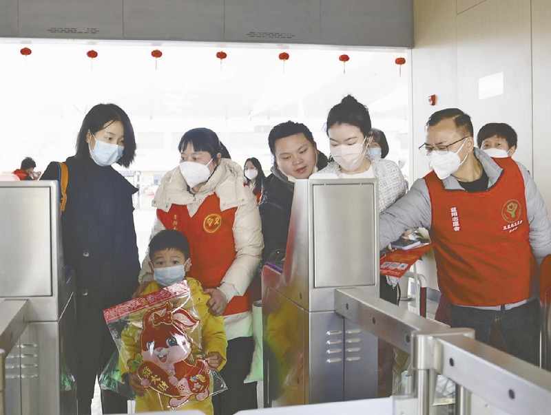 志愿者指引旅客有序通过检票口。